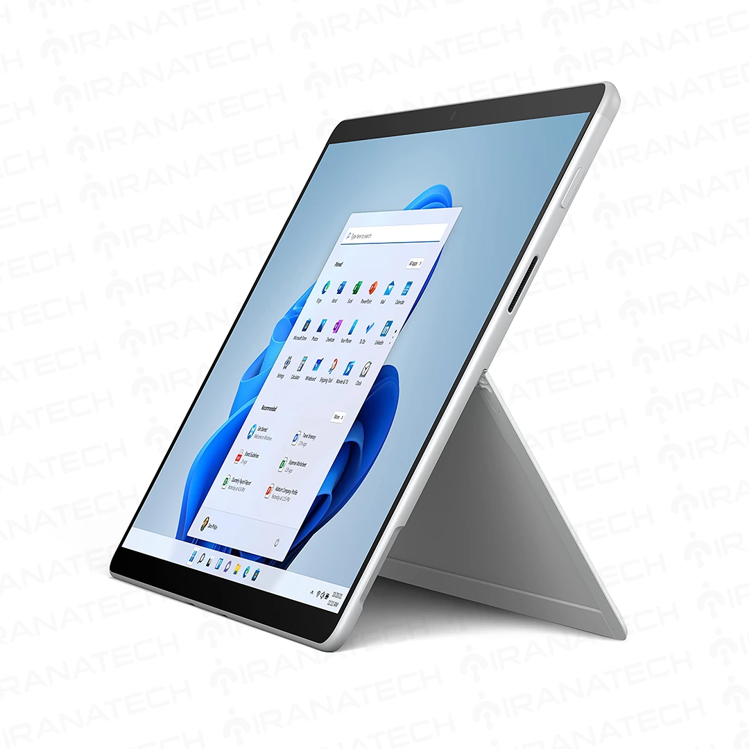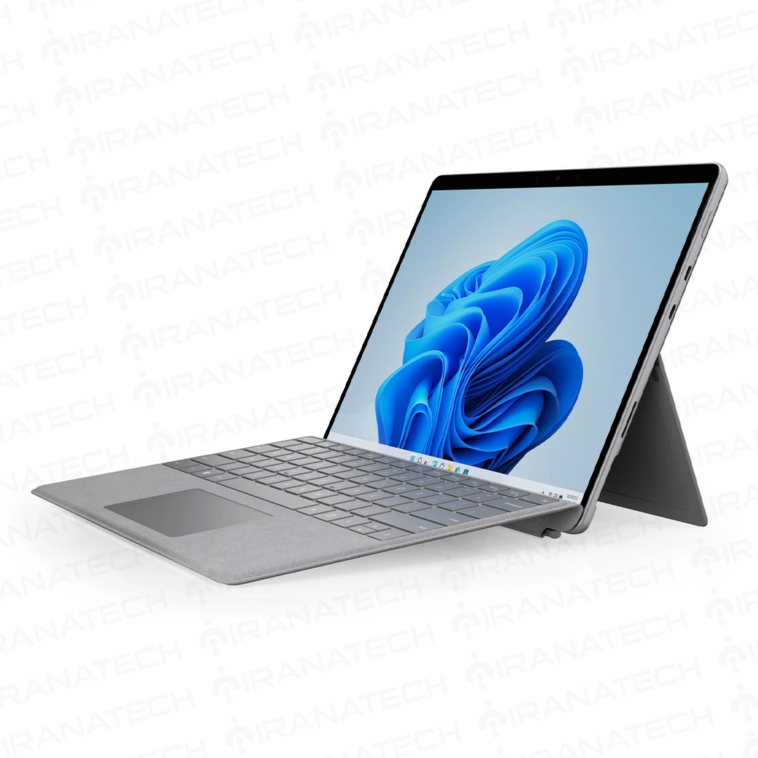 جنس بدنه از آلومینیوم آنودایز شده ممتاز ساخته شده است که هم ظاهری لوکس و مقاوم به خط و خش ارائه میدهد و هم وزن دستگاه را سبک نگه میدارد. طراحی یکپارچه و ارگونومیک تبلت سرفیس پرو 8 باعث شده کار با قلم، کیبورد جداشدنی و لمس صفحه نمایش به تجربهای راحت و لذتبخش تبدیل شود.
